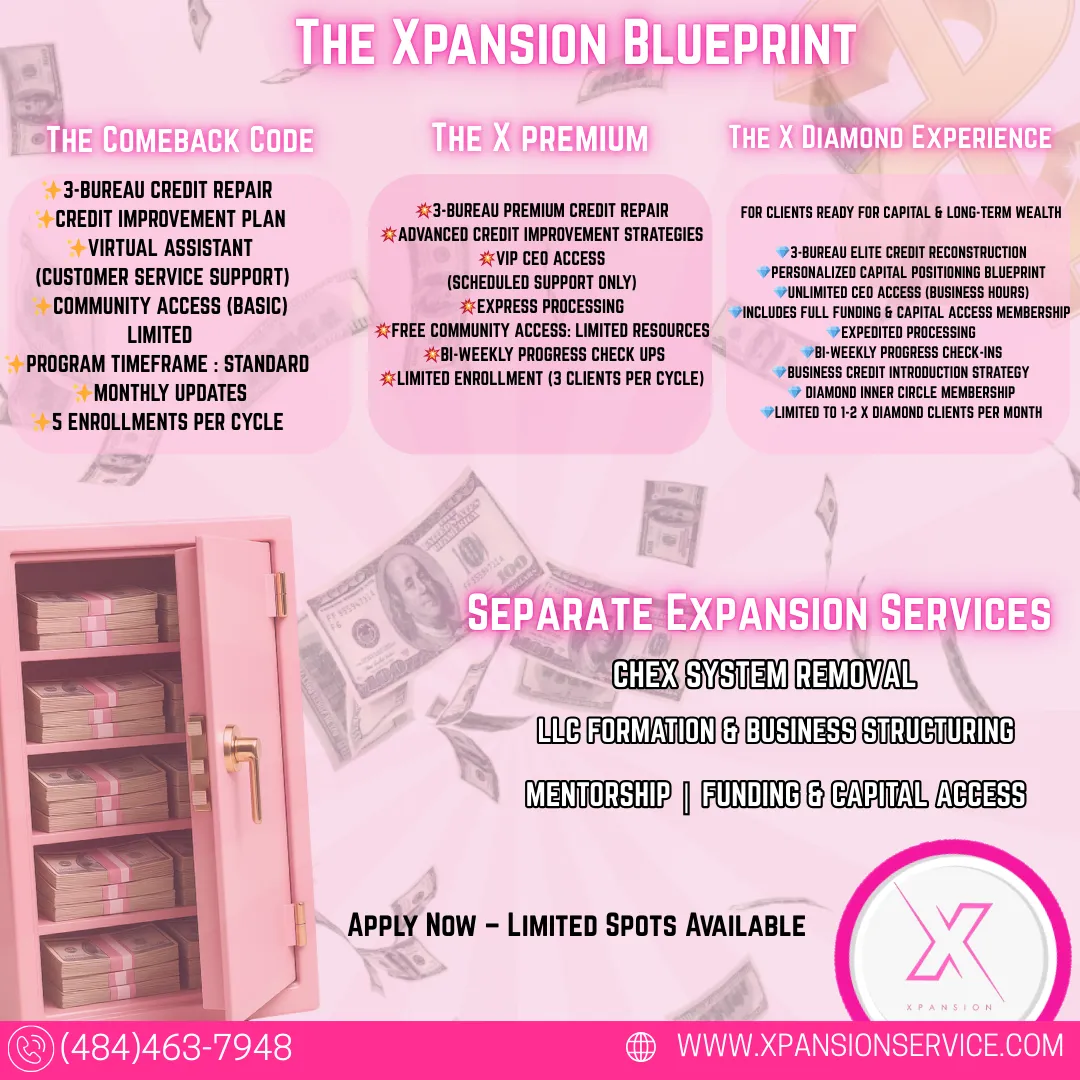 I just want to thank Xpansion for helping my credit from a 545 to a 800! Very genuine to her clients and professional!